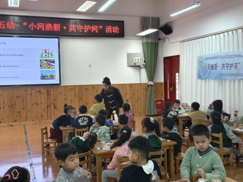 活动开始,老师通过图片让孩子们直观看到 “干净小河” 的水草丰茂与 “生病小河” 的垃圾漂浮,在老师的引导下,孩子们纷纷举手说出 “不扔垃圾”“种水草” 等护河妙招,自然而然地走进活动主题。