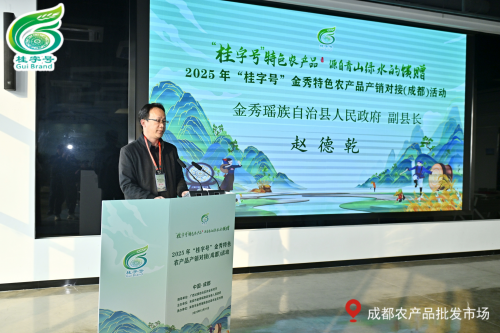 金秀瑶族自治县农业农村局副局长黄龙龙在活动上介绍金秀农业产业优势,强调金秀瑶族自治县依托大瑶山自然优势,秉持生态优先、绿色发展理念,已在农产品品牌建设与新型农业经营主体培育上取得显著成就。金秀视成都为重要合作伙伴,期望通过产销对接活动,构建合作平台,实现双方共赢,共同推进乡村振兴。