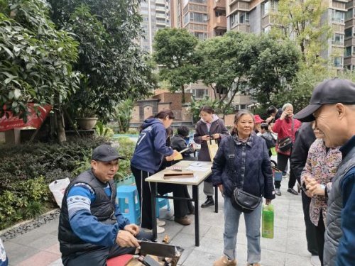 磨刀专区同样人气高涨,志愿者们自带粗、细两种磨刀石及固定工具,仔细清理刀具上的锈迹,按照“粗磨去缺口、细磨增锋利”的流程,娴熟地为居民打磨菜刀、剪刀。原本锈迹斑斑、刃口迟钝的刀具,经过打磨后变得锃亮锋利。“这把菜刀用了三年,切菜都要费好大劲,现在磨完跟新的一样,真是帮了大忙!”居民李阿姨拿着磨好的菜刀,对师傅的专业服务表示感谢。