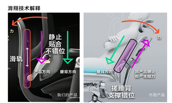 腰背模块通过双弹簧运动悬架连接,可捕捉身体细微位移,实现连续滑翔式贴合: