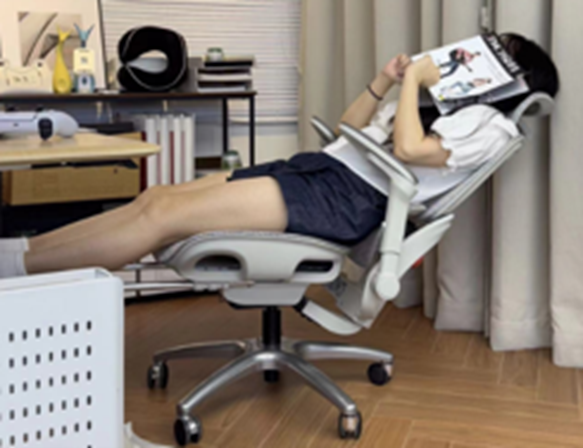 涵盖升降、前后、内外、旋转、翻转及后仰联动,多场景下保持手臂受力连续;扶手翻转后,椅体可完全推进桌下,对租房与小空间用户尤为友好。