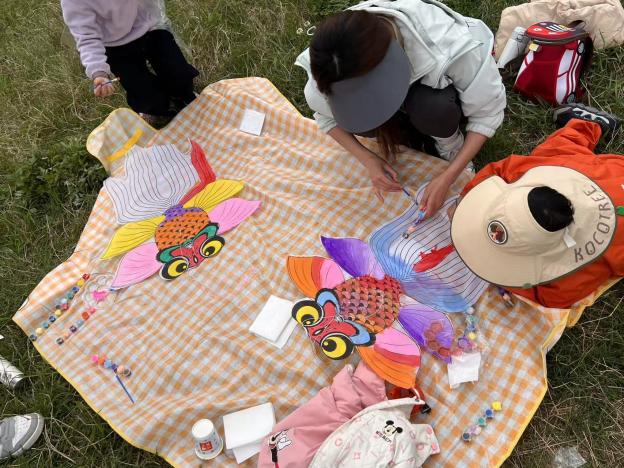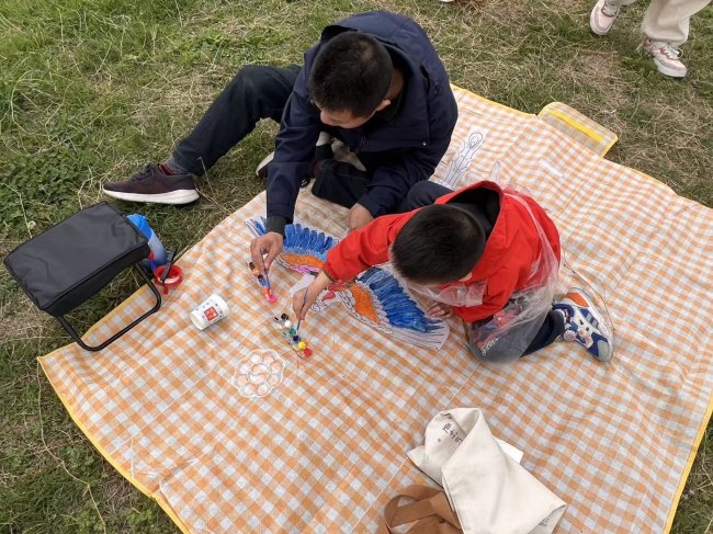 随着手工老师的登场,彩绘纸鸢环节正式开启。老师结合春日元素,用生动易懂的语言讲解纸鸢彩绘的技巧、色彩搭配方法,还现场示范勾勒线条、填充色彩的细节,耐心解答孩子们提出的各类问题,引导大家发挥想象力与创造力。亲子们围坐在一起,大手牵小手,分工协作、默契配合,孩子们用稚嫩的笔触描绘心中的春日图景,家长们则在一旁辅助指导,偶尔分享自己的童年趣事。现场欢声笑语不断,一笔一画间,不仅勾勒出五彩斑斓的纸鸢,更凝聚着亲子间的温情与默契,一只只原本素净的纸鸢,渐渐变得鲜活灵动、独具特色。