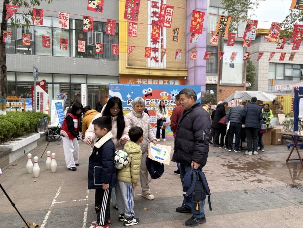 趣味运球项目中,亲子搭档背对背夹球前行,全程默契配合、步调一致,在欢声笑语中增进亲子情感;摸石过河项目里,参与者手持道具砖灵活挪动前行,手脚协调与专注力的双重考验让大家乐此不疲;吹乒乓球项目成为亲子协作的热门打卡点,家长与孩子共同控制气息,让乒乓球在水杯间依次传递,耐心与配合成为通关关键;打到保龄球项目则充满随机乐趣,参与者瞄准目标投掷,手眼协调的比拼让现场喝彩声不断。各个趣味项目前都排起了热闹的队伍,居民们相互鼓励、彼此支招,陌生的邻里在互动中熟悉起来,熟悉的邻里在协作中感情更浓,现场处处洋溢着欢乐和谐的邻里氛围。